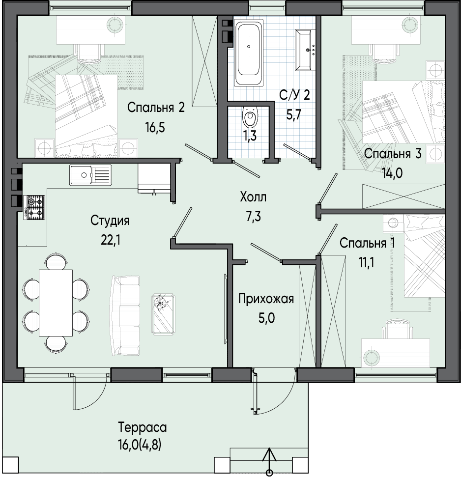 Это идеальное решение для тех, кто не хочет долго ждать и откладывать переезд в новую квартиру. Мы предлагаем три варианта дизайнерских ремонтов на выбор, чтобы каждый клиент мог найти свой идеальный стиль. Есть возможность включить стоимость ремонта в ипотеку.